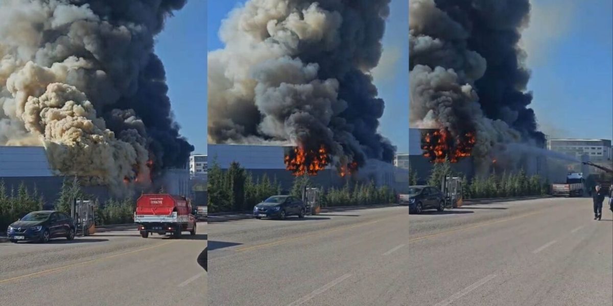 Ankara’nın Sincan ilçesinde bulunan bir boya fabrikasında sabah saatlerinde çıkan yangın, kısa sürede büyüyerek tesisin büyük bölümünü etkisi altına aldı. Yangın sırasında meydana gelen patlamalar çevrede endişeye neden olurken, işçiler hızla tahliye edildi. İhbar üzerine bölgeye çok sayıda itfaiye ve sağlık ekibi sevk edildi. Yoğun dumanın gökyüzünü kapladığı olayda, ekiplerin alevlere müdahalesi aralıksız şekilde devam ediyor.