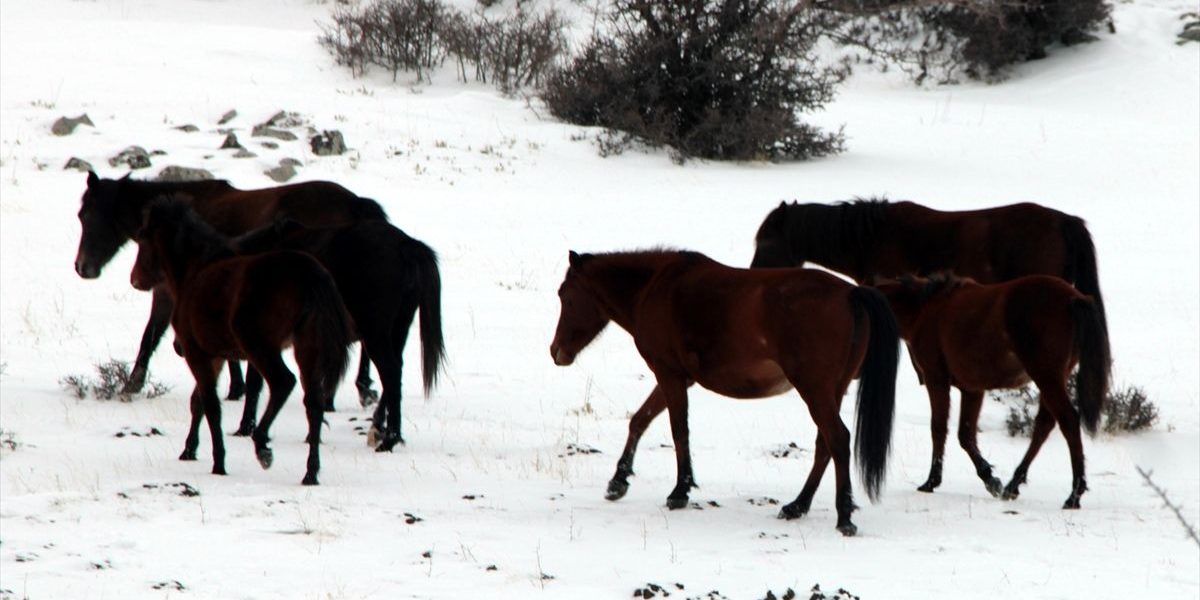 Ankara’nın Beypazarı ilçesindeki Karaşar ve Nallıkaşı bölgelerinde, karda yiyecek arayan yılkı atları görüntülendi.Karaşar Mahallesi Muhtarı Paşa Mehmet Gürlek, atların karda ot ayamaya başladığını söyledi.Yılkı atlarının çoğaldığına değinen Gürlek, “Atlar zaman zaman yaylaya giderken mahallenin içinde geçiyorlar. Biz de onlara bakıyoruz. Yanlarında küçük tayları var ve hayli çoğaldığını görüyoruz. Bu atlar mahallemizin maskotu haline geldi. Gözümüz gibi bakıyoruz. Sürekli takip ediyoruz. Bu günkü karda görüldüğü gibi arazide ot arama çabasındalar. Bir o tarafa bir bu taraf gidiyorlar.”