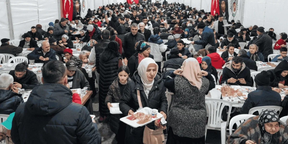 Her gün binlerce vatandaşa sıcak yemek ikram edilen çadırlarda Ramazan’ın paylaşma ve dayanışma ruhu hep birlikte yaşatılıyor. İftar saatinde aynı sofrada buluşan vatandaşlar, kardeşliğin en güzel örneklerinden birini sergiliyor.