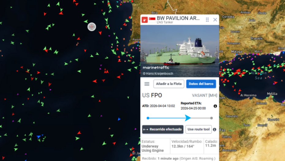 ABD’den yola çıkan ve Cebeli Tarık Boğazı açıklarında olan BW Pavilion Aranda LNG gemisi 24 Nisan’a kadar Türkiye’ye gelecek.